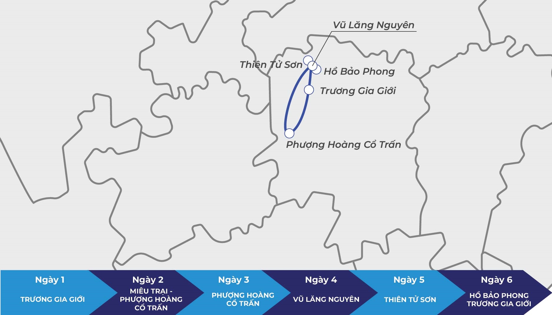 Đoàn thăm quan: Khu phong cảnh Viên Gia Giới, Dương Gia Giới – nằm ở phía bắc của Công viên Rừng Quốc gia Trương Gia Giới tại Khu thắng cảnh Vũ Lăng Nguyên , bối cảnh nổi tiếng thế giới trong phim “Avatar” với những ngọn núi đá lơ lửng giữa không trung. Với phong cảnh quá đỗi mê hoặc, đặc biệt là quang cảnh huyền bí với những đám mây và sương mù sau vài cơn mưa phùn, Viên Gia Giới thay đổi vô cùng hấp dẫn du khách và được ca ngợi là “ Thế giới Pandora” huyền bí (đi lên cáp treo Thiên Tử Sơn, đi xuống cáp treo Dương Gia Giới). Thiên Hạ Đệ Nhất Kiều – là địa điểm không thể bỏ qua tại Khu thắng cảnh Viên Gia Giới, bởi đây là cây cầu hoàn toàn do thiên nhiên hiếm thấy trên toàn cầu. Bạn có thể nhìn thấy là cây cầu đá rộng 3 mét, dày 5 mét và dài khoảng 20 mét, với chiều cao tương đối gần 400 mét. Rất khó tìm thấy trên thế giới, nó được mệnh danh là Cây cầu số 1 Thế giới.